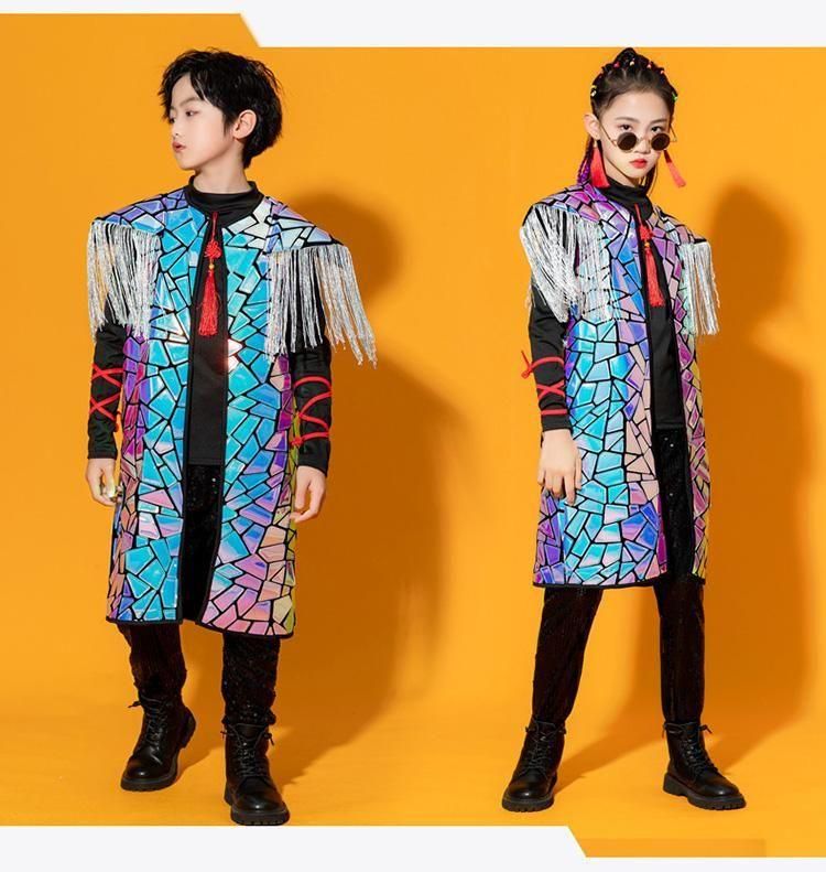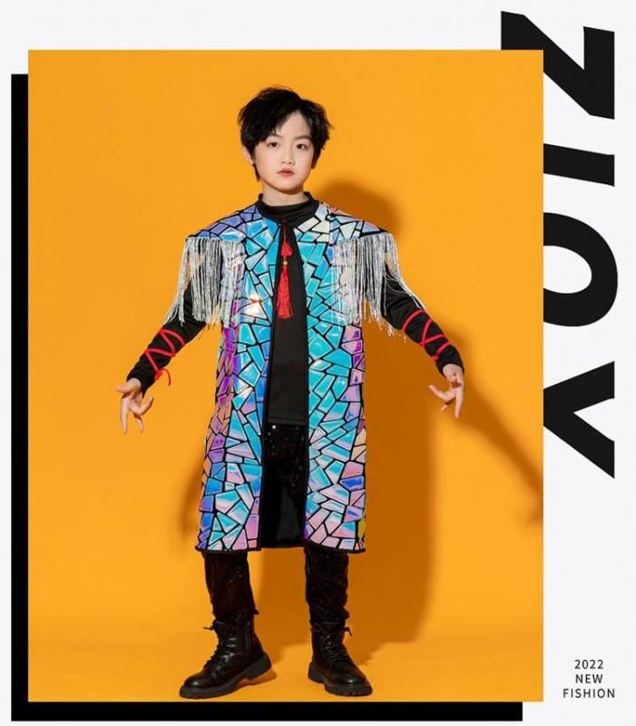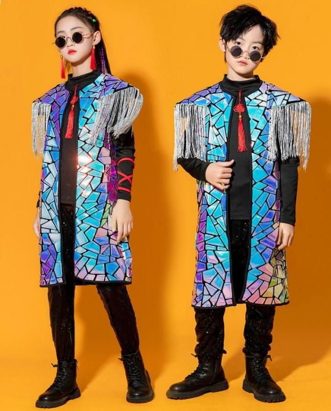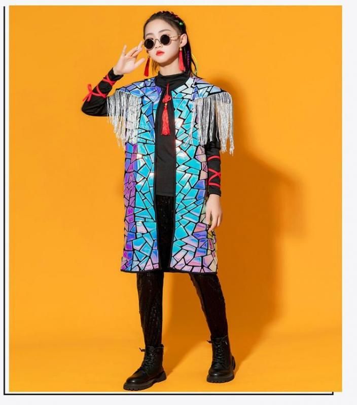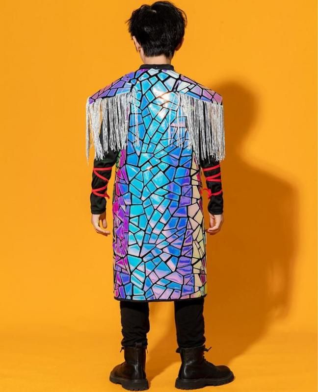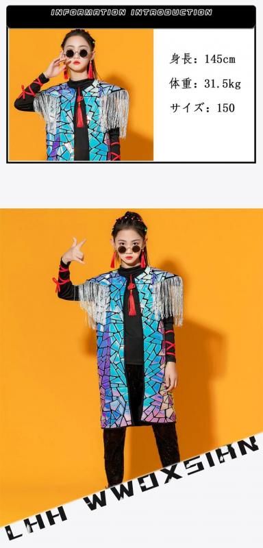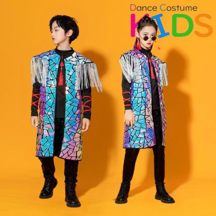 キッズ ダンス衣装 ヒップホップ ステージ 衣装 子供 発表会 ダンス ウェア セットアップ 長袖 パンツ メタリック スパンコール 光沢 ラメ カラフル ファッションショー 衣装 ショー装