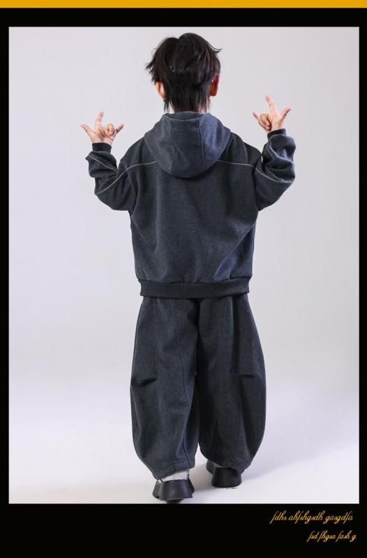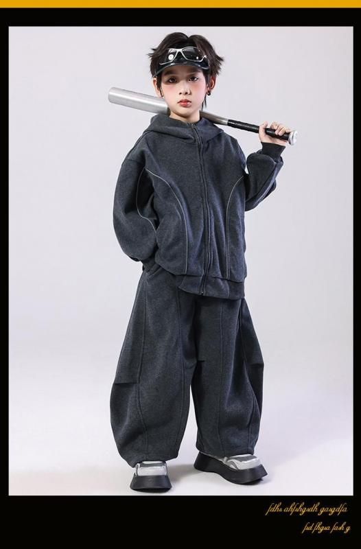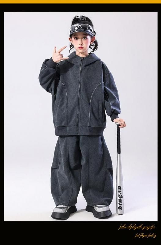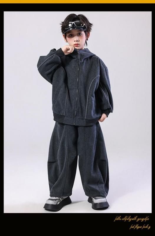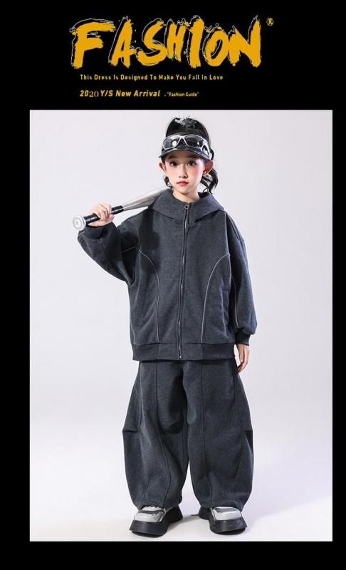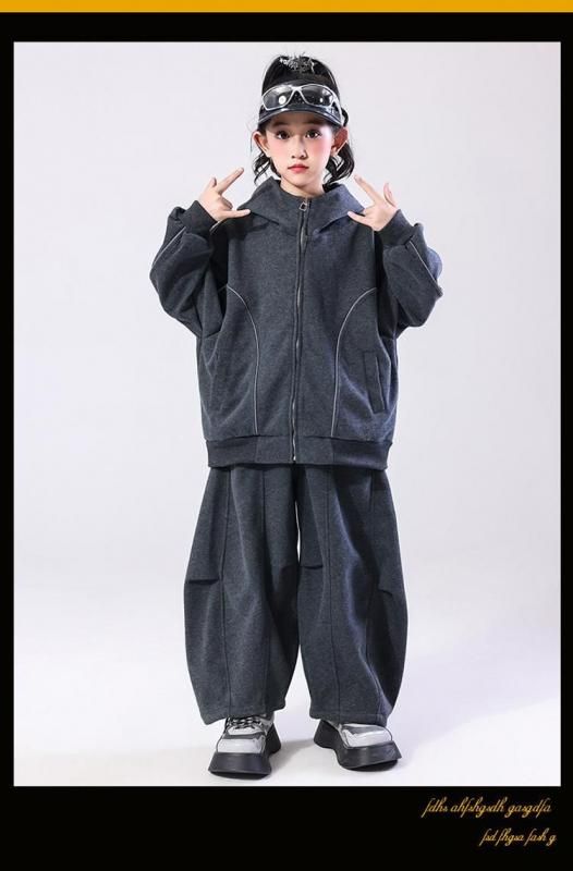 無地 グレーパーカー フード付き ロングパンツ キッズ ダンス セットアップ 韓国 k-pop ヒップホップ 女の子 男の子 ユニセックス  ステージ衣装 jazz hiphop